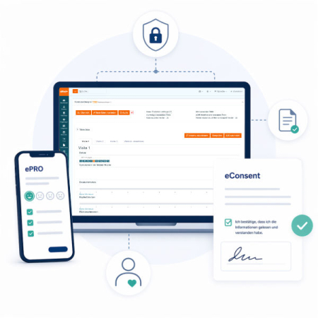 Für ePRO und eConsent bieten wir individuelle Zusatzpakete an, die speziell nach Ihren Anforderungen entwickelt werden. Je nach Studie können digitale Patientenfragebögen, Verlaufsdokumentationen, elektronische Einwilligungen oder weitere studienspezifische Prozesse umgesetzt werden.